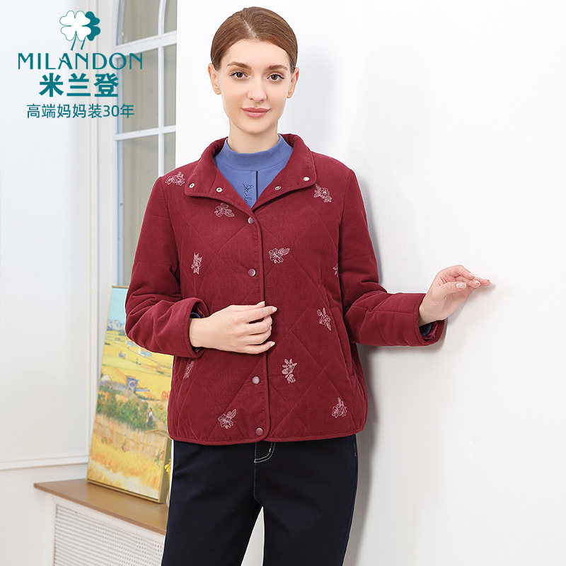 米兰登中老年妈妈装2025年秋冬新款灯芯绒棉衣外套女棉服保暖加厚