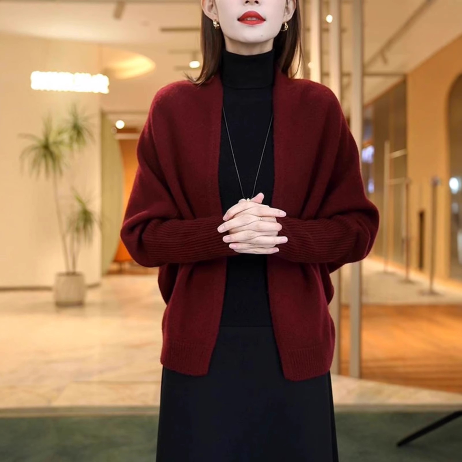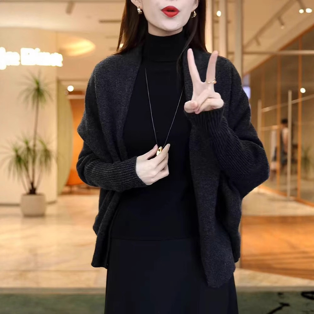 慵懒风羊毛针织开衫女春秋蝙蝠袖高级感外搭披肩上衣宽松毛衣外套