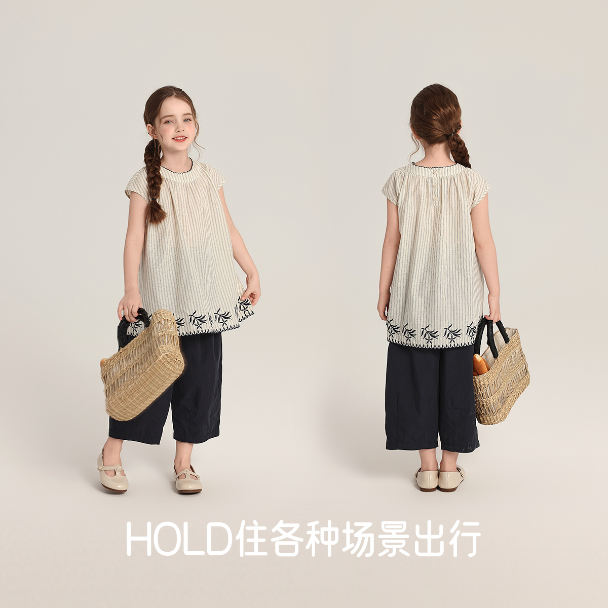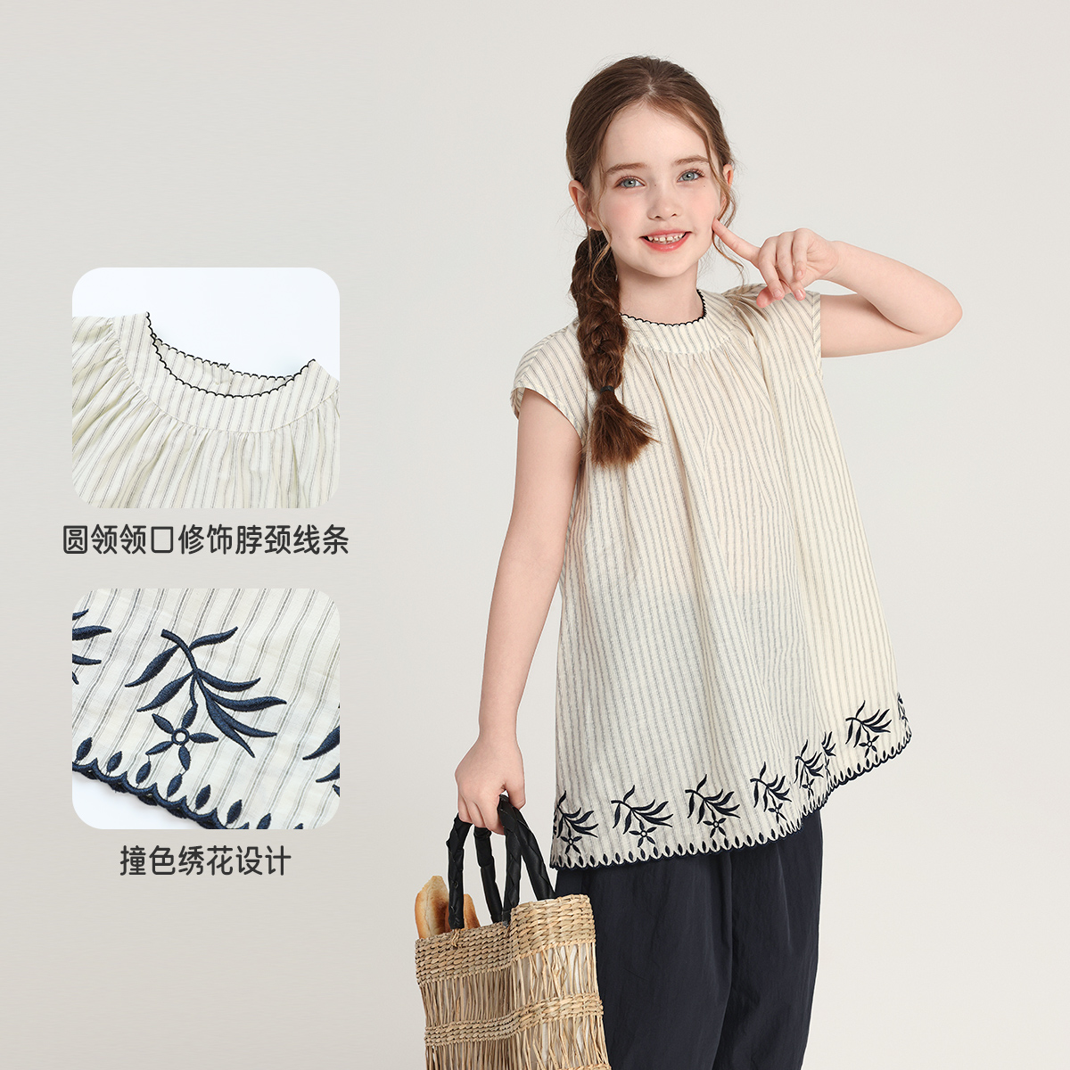 布丁哈鲁童装夏装女童纯棉短袖2025新款夏季儿童洋气花边条纹小衫