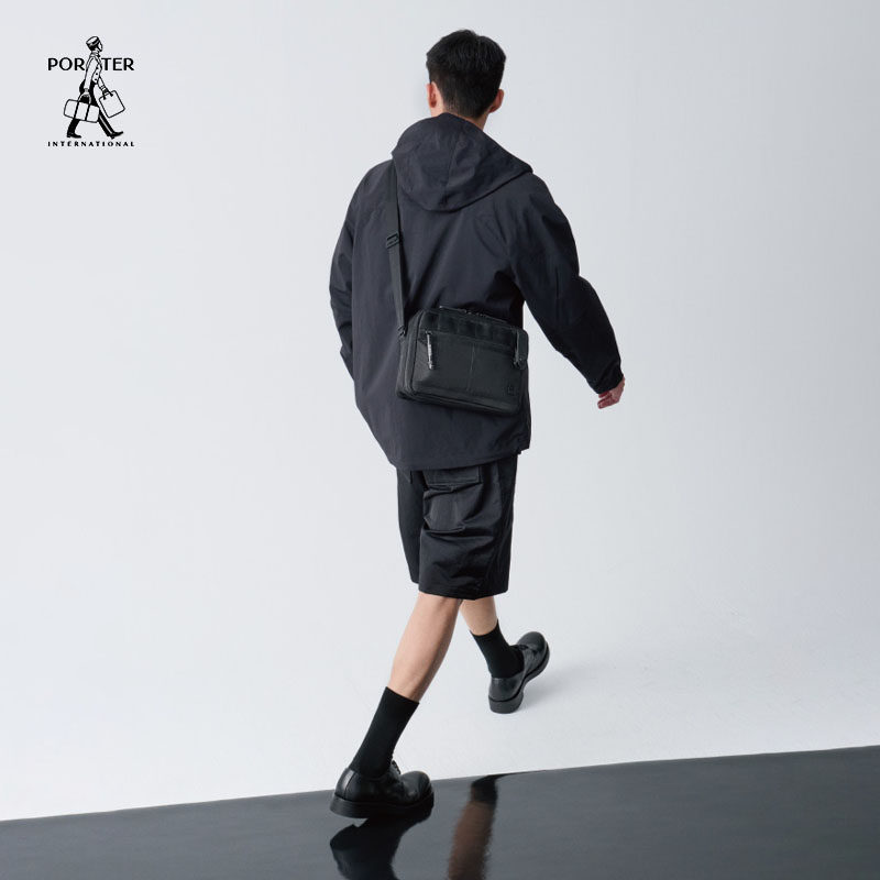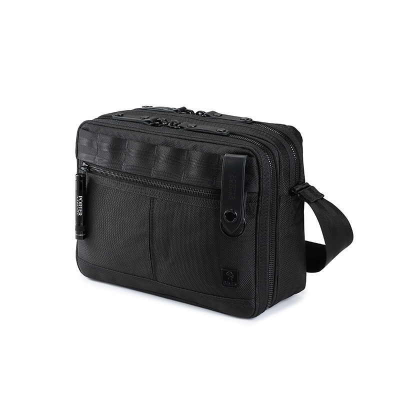 Porter International尼龙手电双拉链斜挎包NEW HEAT黑色单肩包男