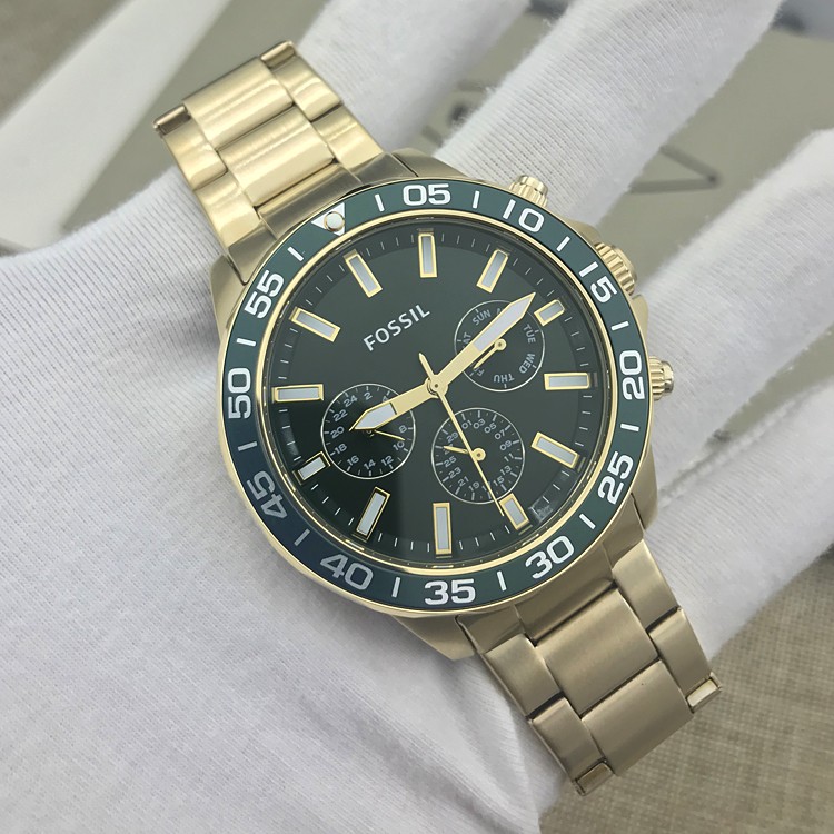 FOSSIL手表不锈钢绿盘三眼多功能星期日历商务休闲石英表防水男表
