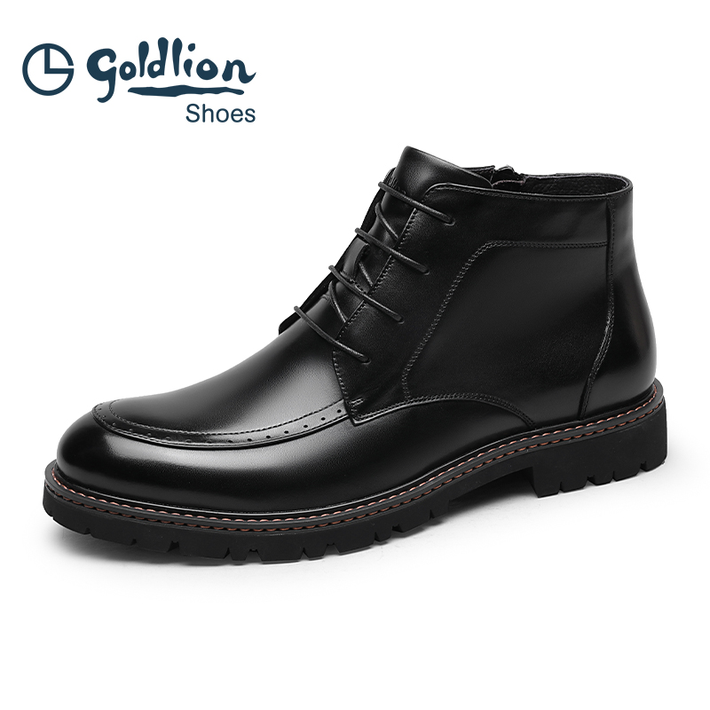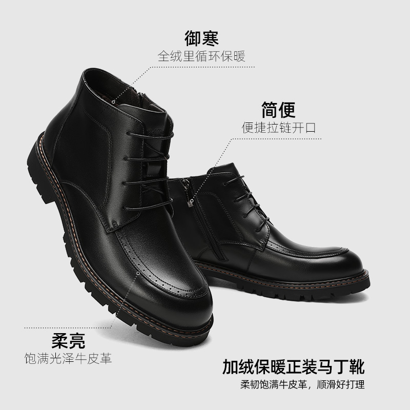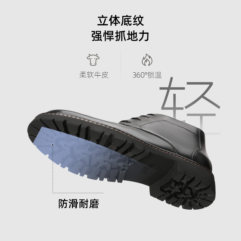 金利来男鞋冬季马丁靴加绒保暖雪地靴男士棉鞋厚底真皮高帮皮鞋男