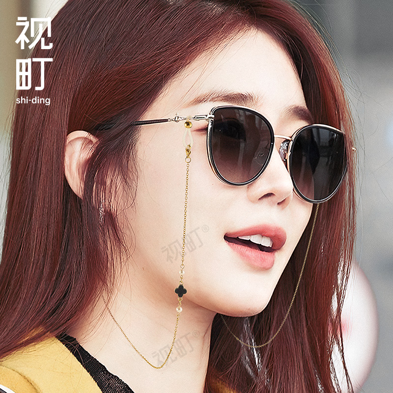 眼镜链条女韩版潮复古挂脖钛钢不褪色明星款墨镜链子珍珠装饰挂绳