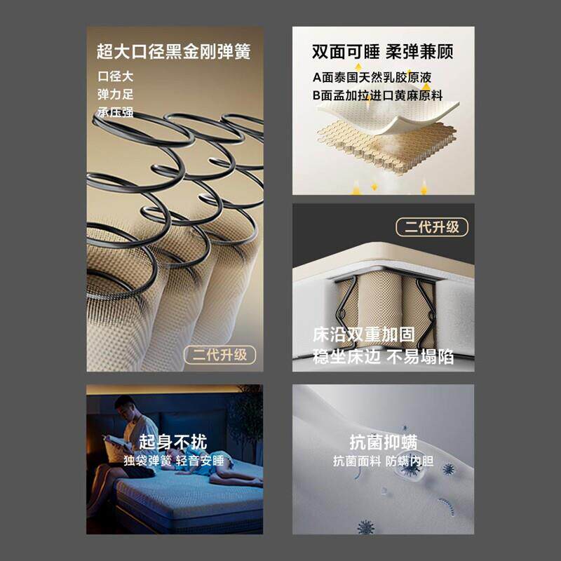 8H黑金刚独立超大口径弹簧护脊乳胶床垫1.8米双面软硬席梦思床垫