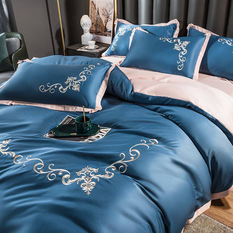 夏季酒红色套件结婚婚庆床单被套欧式轻奢床品三件冰丝床上四件套