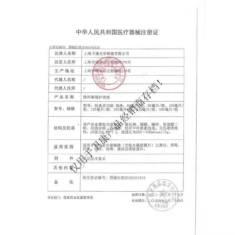 卫康隐形眼镜护理液瓶500ml*3隐形近视眼镜美瞳新视护理液大瓶SP