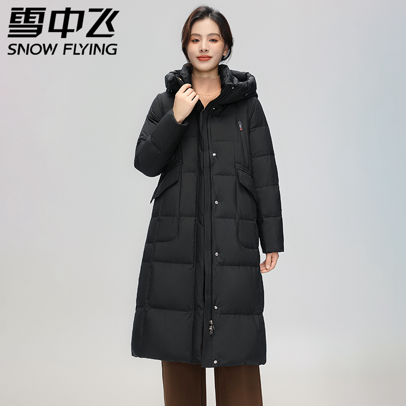 雪中飞2024秋冬新款女士中长款连帽百搭时尚休闲羽绒服外套潮