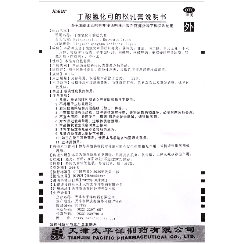 【尤乐洁】丁酸氢化可的松乳膏0.1%*10g*1支/盒