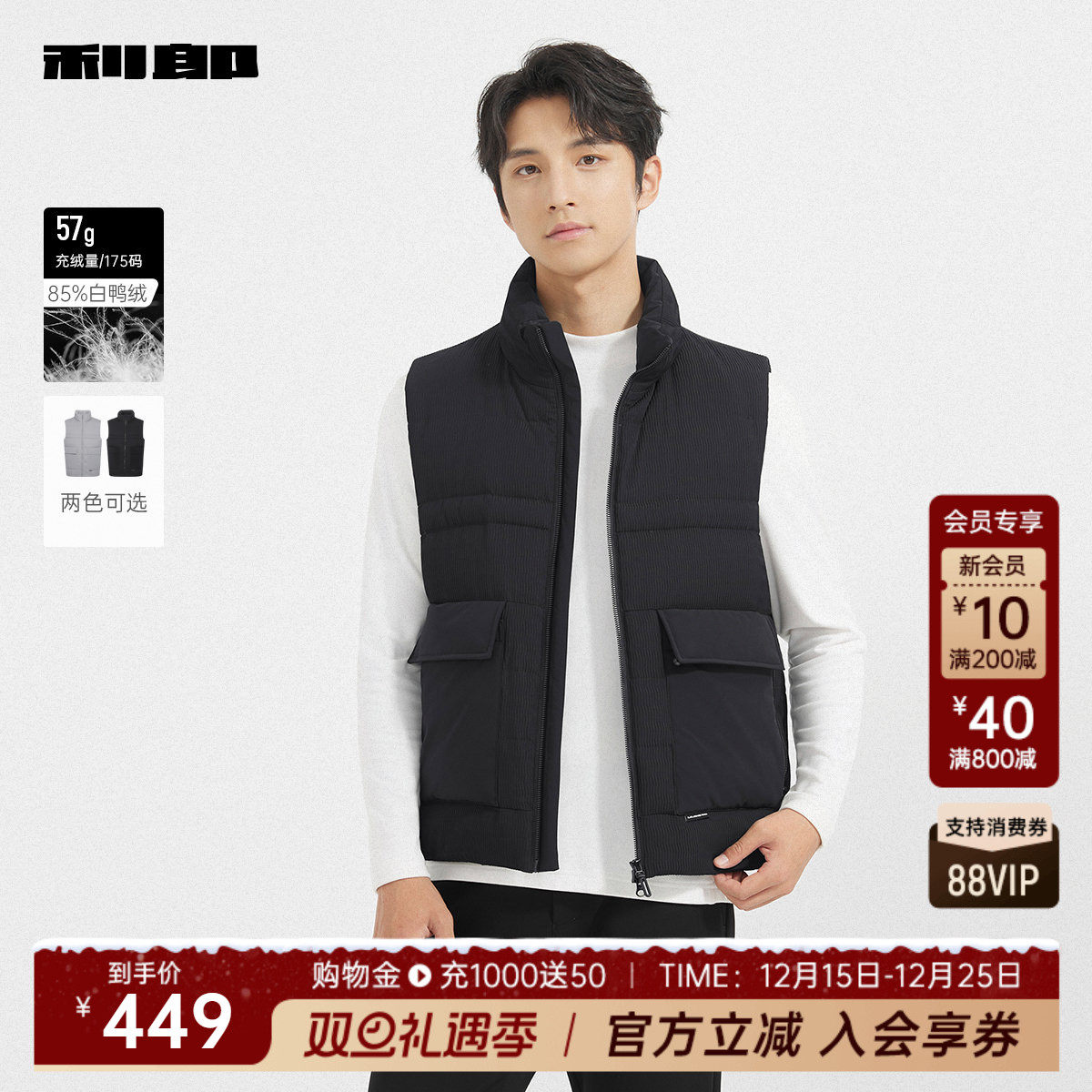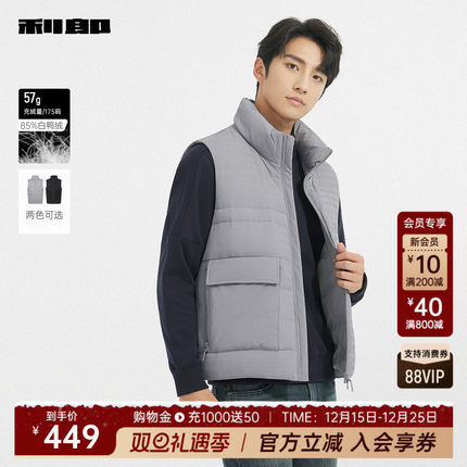 利郎官方肌理白鸭绒保暖羽绒马甲