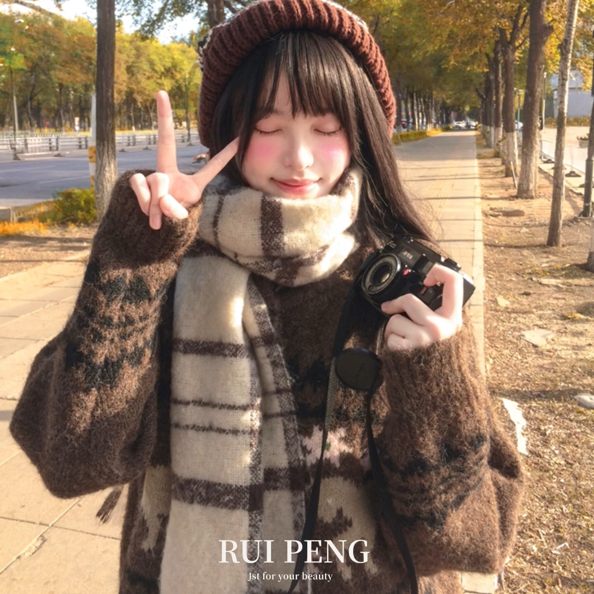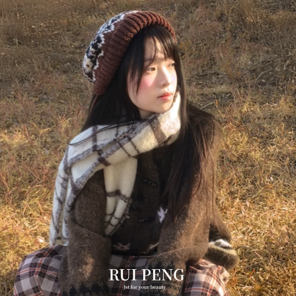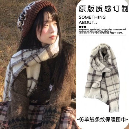 仿羊绒条纹围巾冬季女高级感2025新款百搭学生保暖加厚围脖披肩