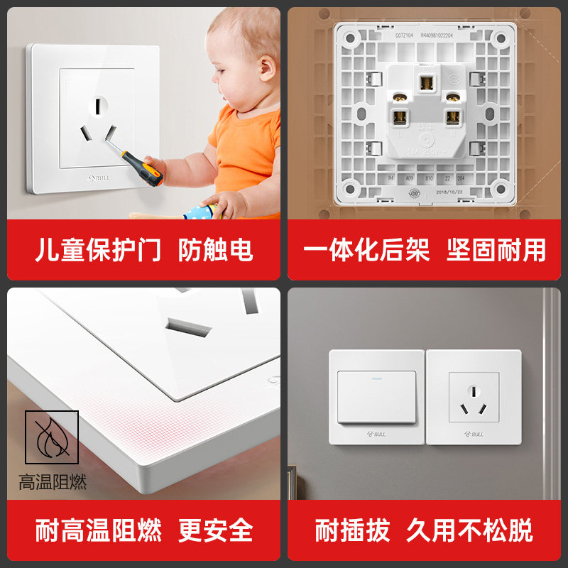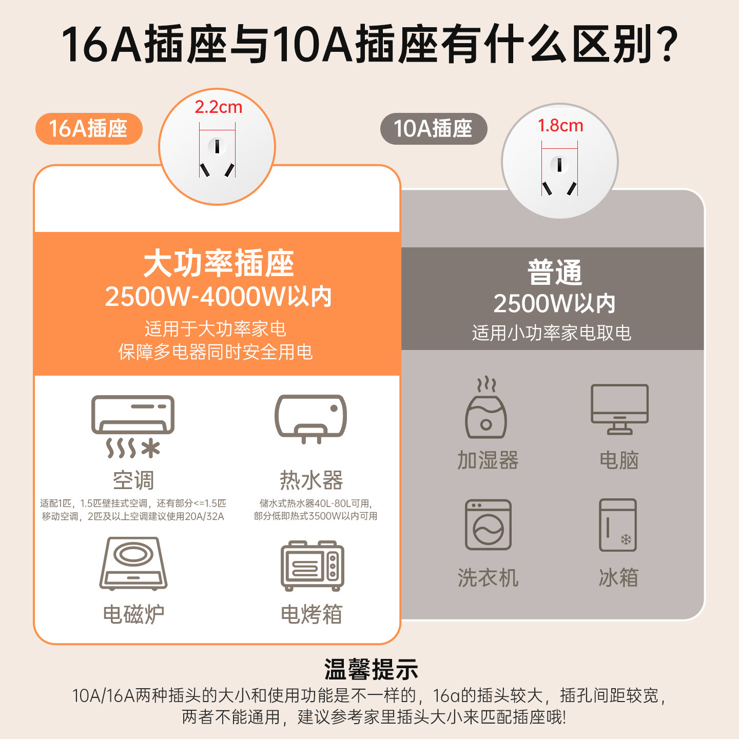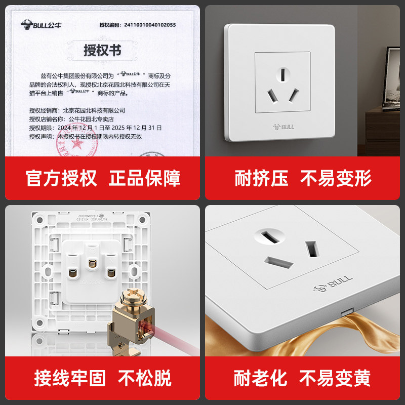 公牛三孔16A空调插座热水器暗装3眼五孔16安专用大功率面板带开关
