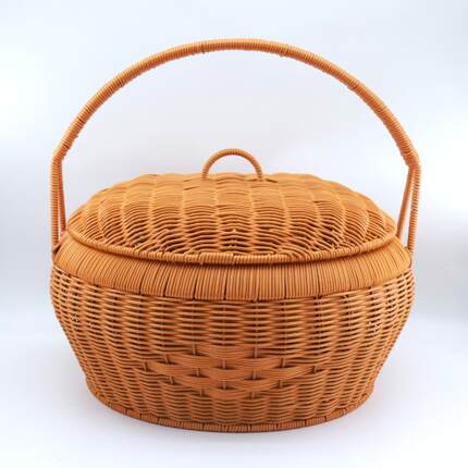 新款手工编织藤编储物手提篮子收纳筐购物篮家用露营水果鸡蛋买菜