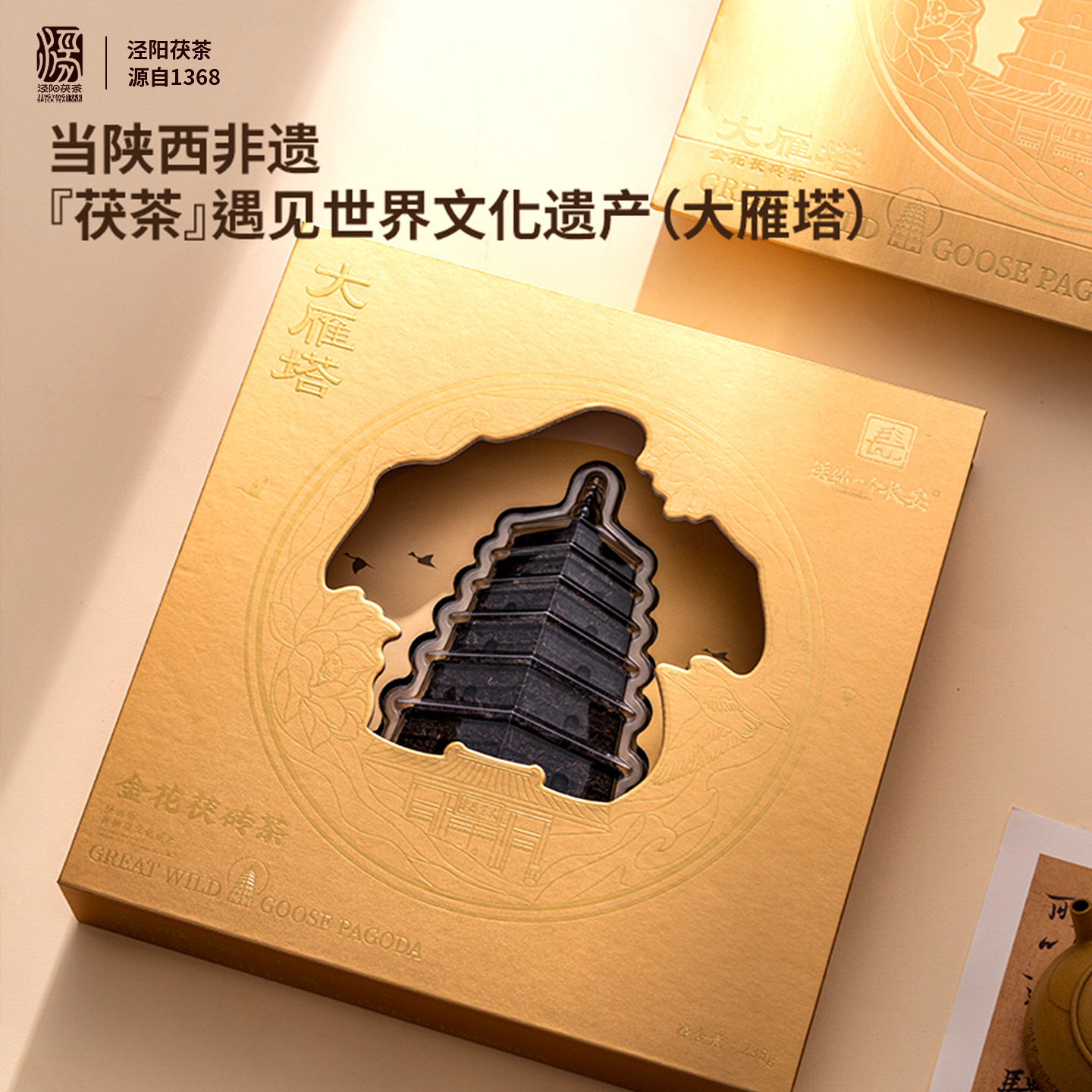 【大雁塔文创】泾阳茯茶文创礼盒235g 金花茯茶砖茶黑茶 西安特产