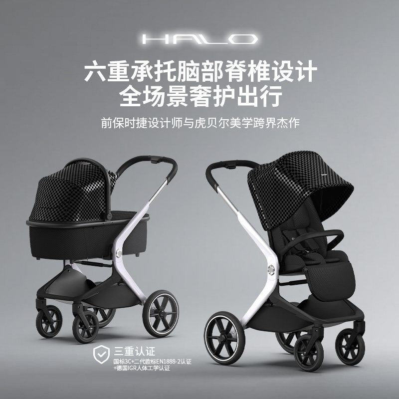 HBR虎贝尔Halo高景观新生婴儿车推车睡篮三合一提篮双向可折叠