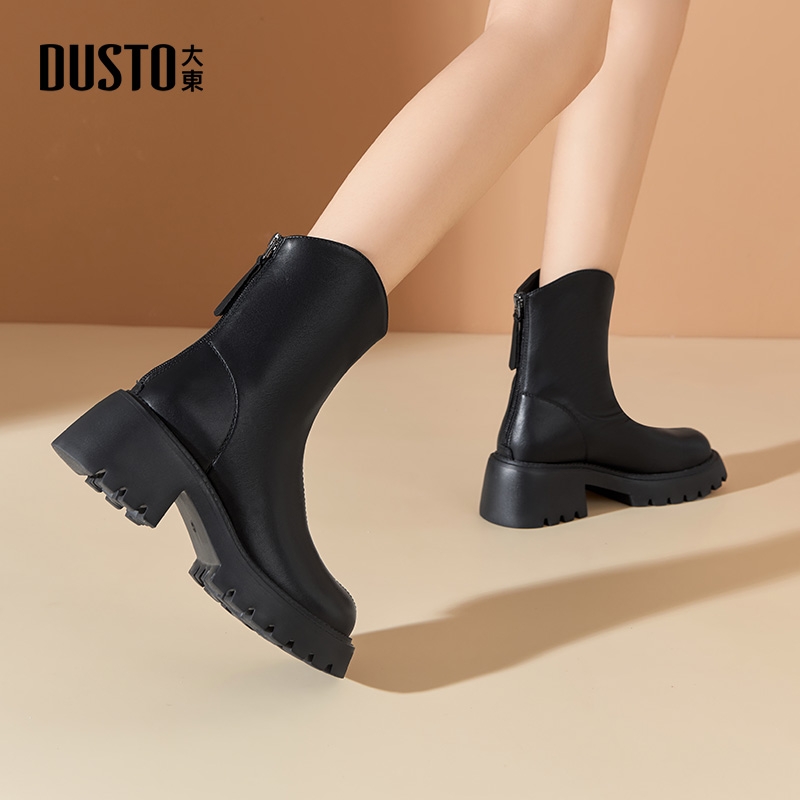 大东白色粗跟短靴女春秋2025新款靴子厚底瘦瘦靴小个子切尔西女靴