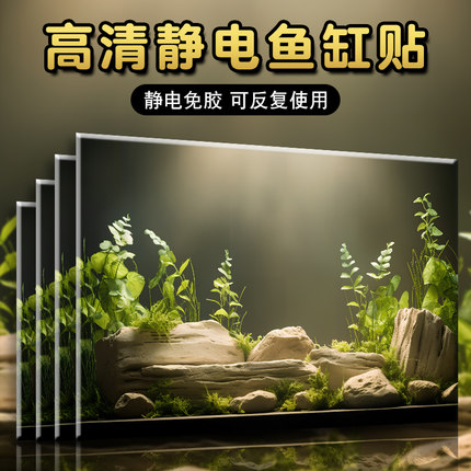 高清鱼缸贴静电贴膜金鱼缸水族箱造景装饰客厅家用迷你缸背景贴纸