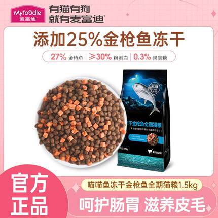 麦富迪金枪鱼冻干猫粮1.5kg成猫幼猫通用粮高蛋白营养全价猫主粮