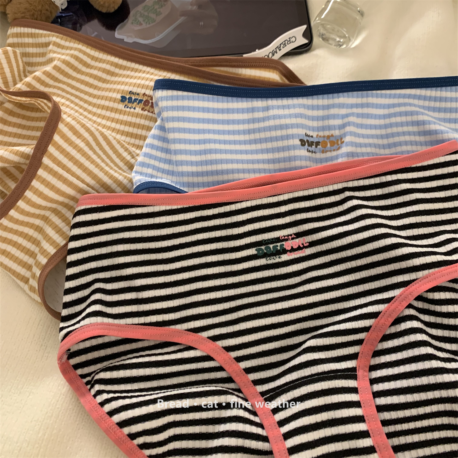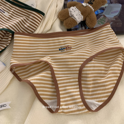 "南瓜色的日落永远浪漫"【慵懒女孩】基础少女条纹内裤女纯棉抗菌