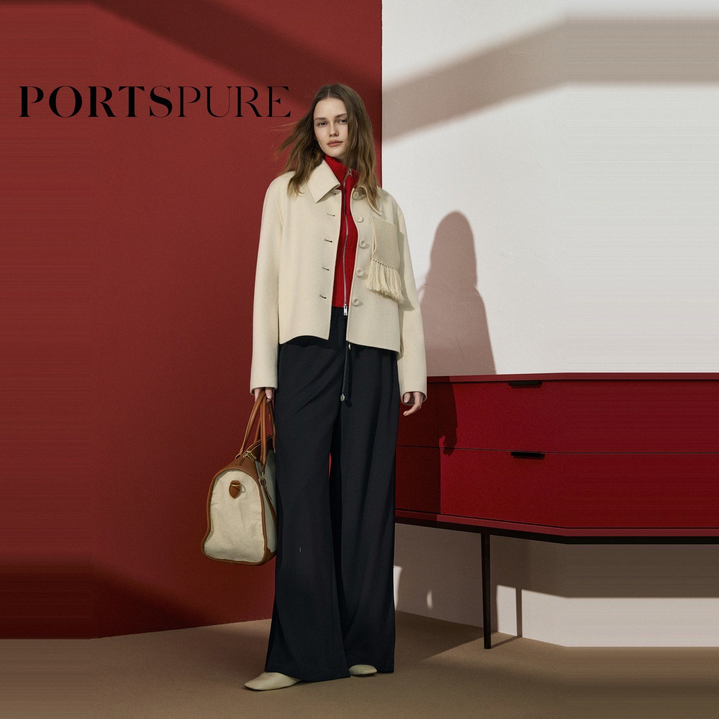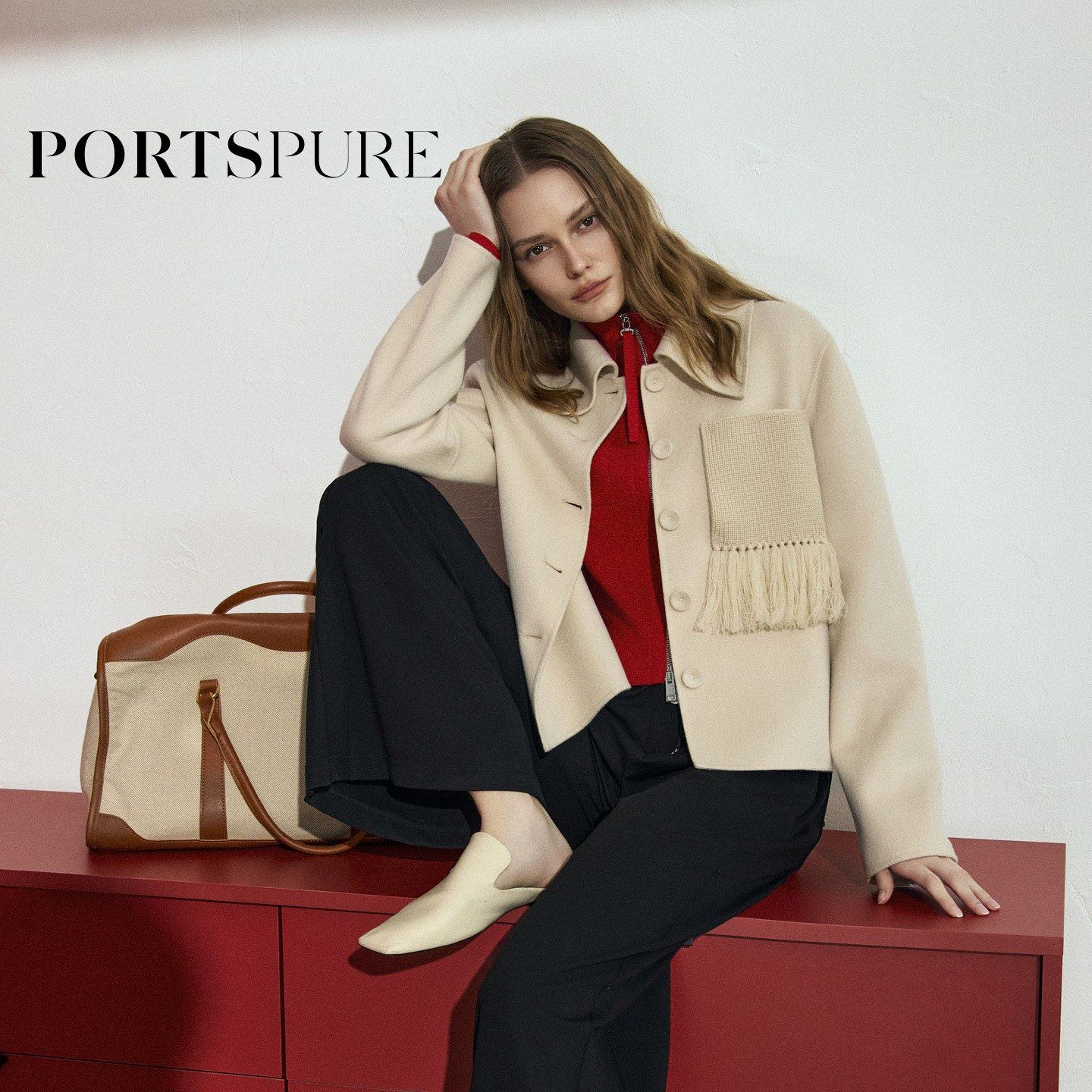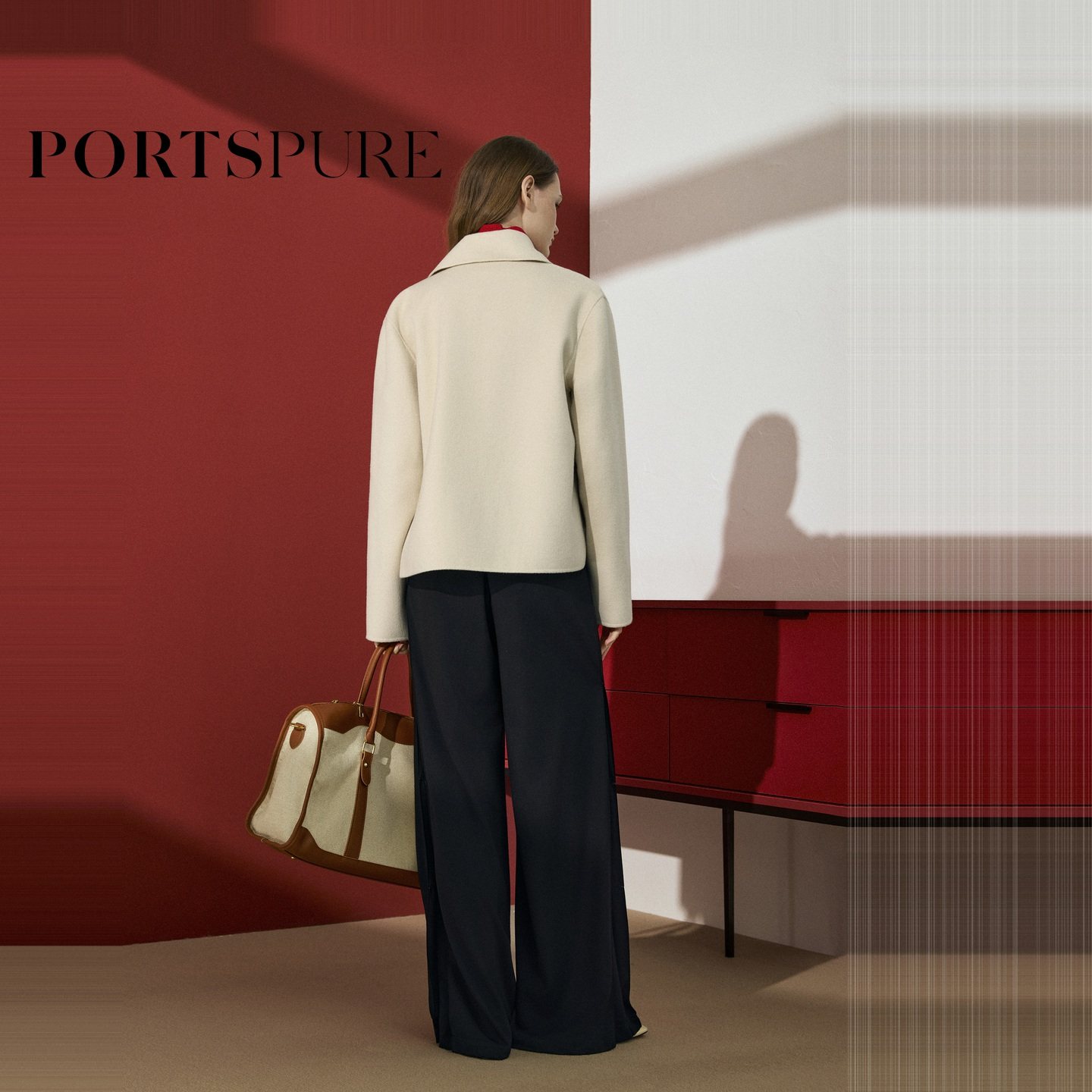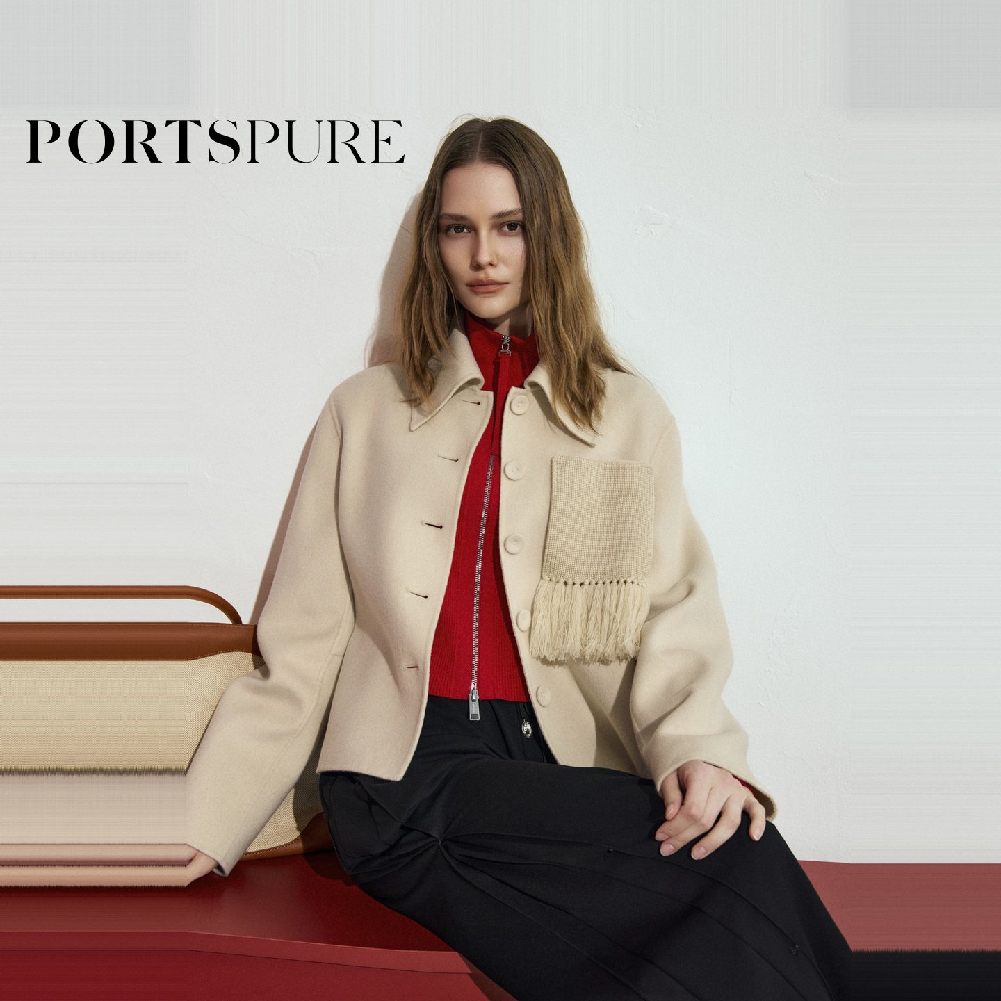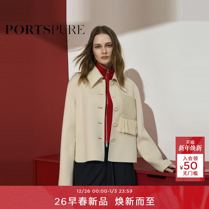 宝姿PORTSPURE女装2026早春新品可拆卸流苏片翻领双面呢短外套