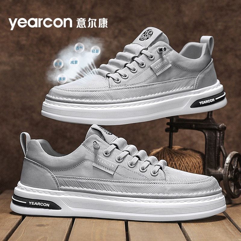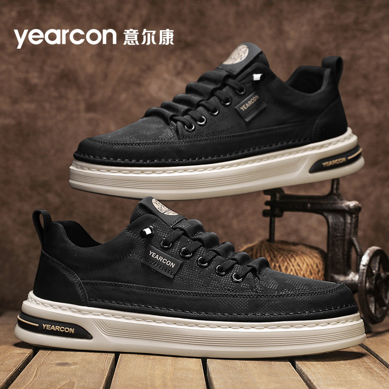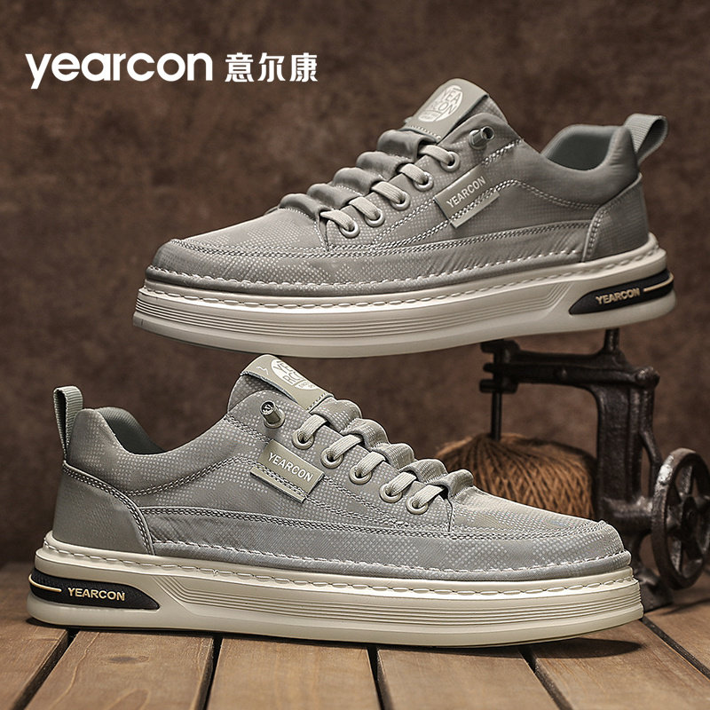 意尔康板鞋男鞋2025新款夏季透气防臭休闲男士一脚蹬帆布鞋子高档