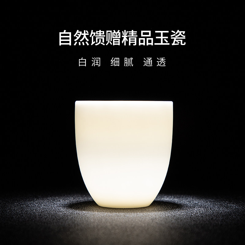 主人杯个人品茗杯羊脂玉功夫茶杯100ML素烧大茶具红茶杯德化白瓷