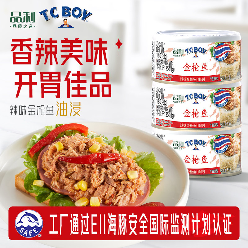【单品】品利TC BOY辣味金枪鱼罐头进口健康即食健身沙拉搭配
