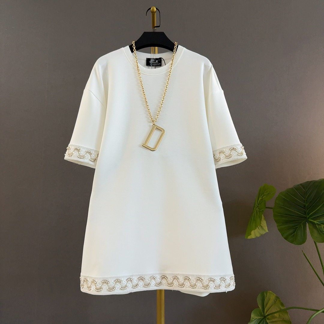 大码蕾丝边中长款宽松上衣