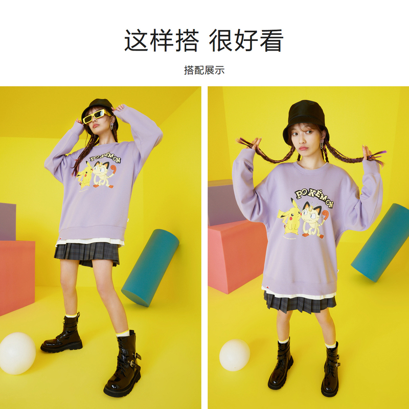 [门店发货]皮卡丘系列森马卫衣女中长款假两件秋新款宽松内搭