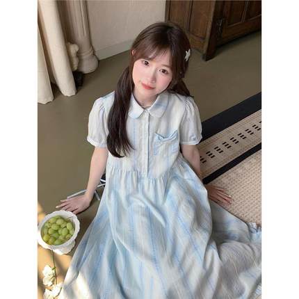 学院风法式条纹连衣裙少女夏装2025新款初高中学生气质显瘦裙子