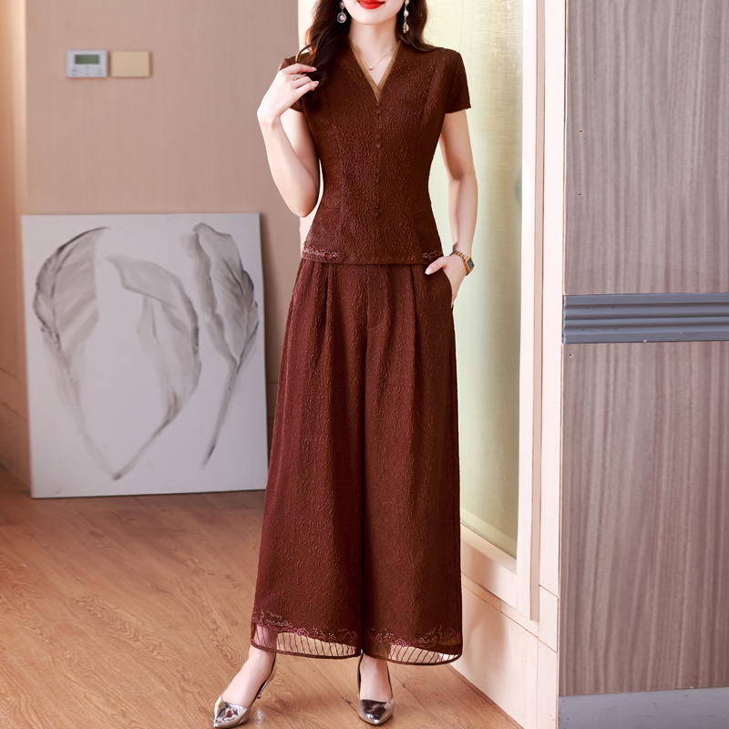 香云纱真丝两件套女2025夏季新款妈妈高端品牌桑蚕丝时尚休闲套装