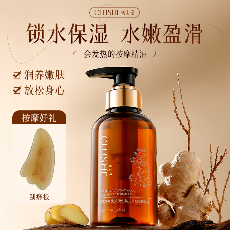 瓷天使生姜艾草发热按摩精油全身体通经络开背推背刮痧官方旗舰店