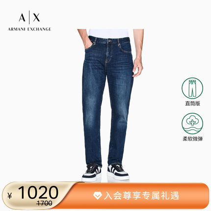 ARMANI EXCHANGE/阿玛尼秋冬新款男纯棉直筒微弹休闲水洗牛仔长裤