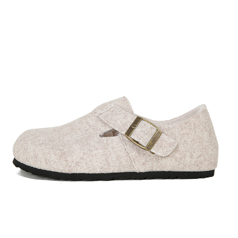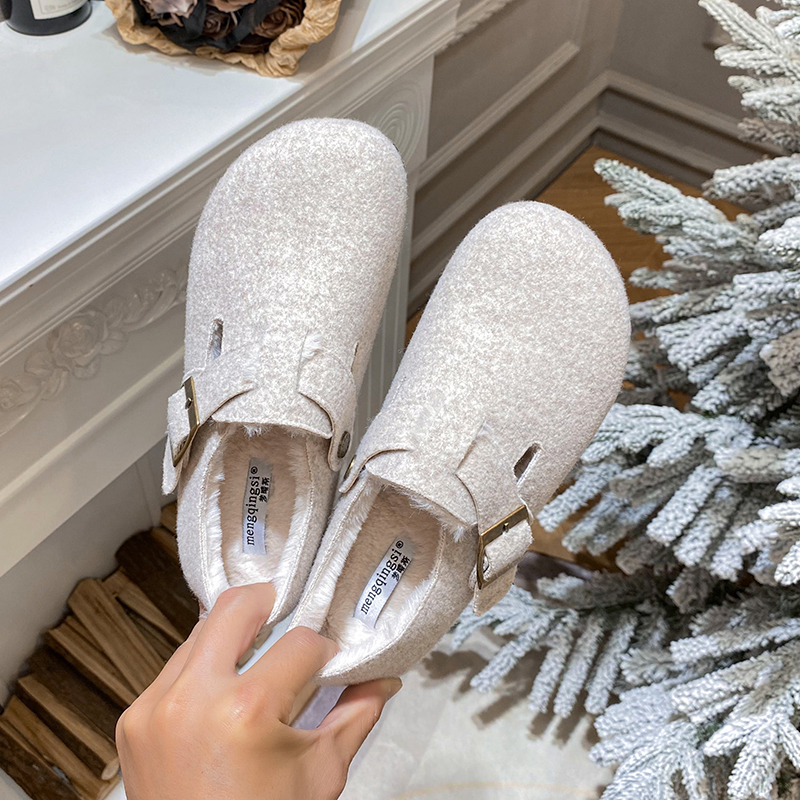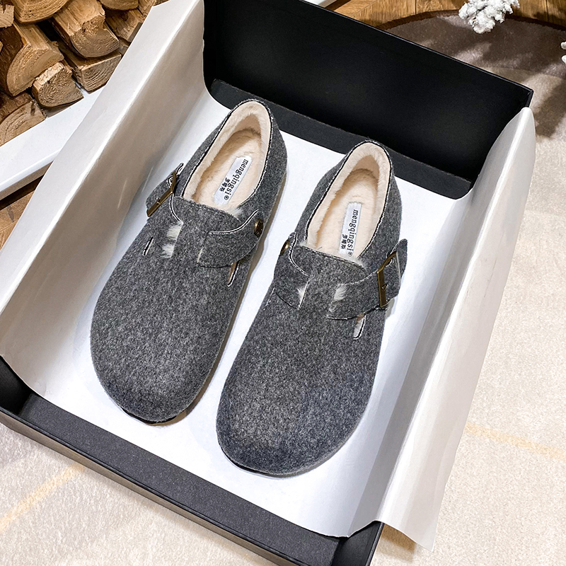 2024秋冬新款勃肯鞋女加绒软木平底懒人鞋超软底羊毛毡包头鞋大码