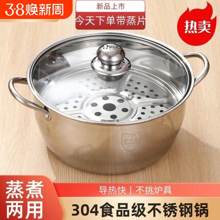 304不锈钢多功能厚汤锅蒸锅煲汤家用煮粥奶锅火锅电磁炉锅具通用
