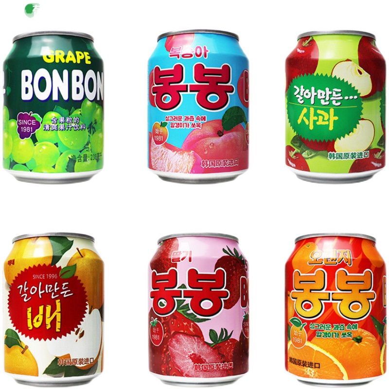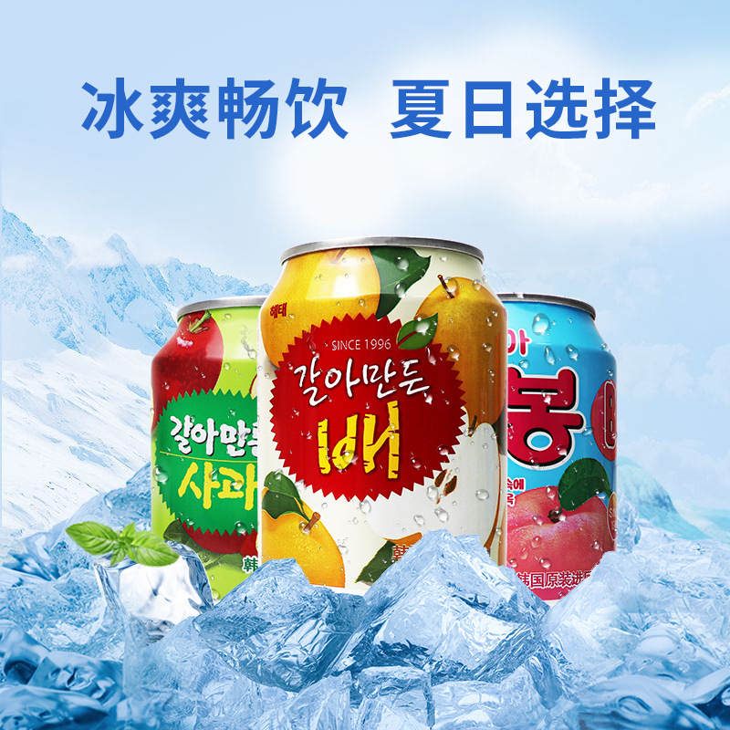 韩国海太果汁饮料8口味苹果葡萄梨桃草莓桔子果粒果汁238ml罐装