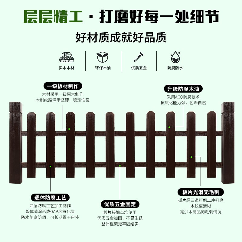 花园草坪碳化防腐木栅栏护栏栏杆围栏篱笆J栏栅装饰庭院1.5米加宽
