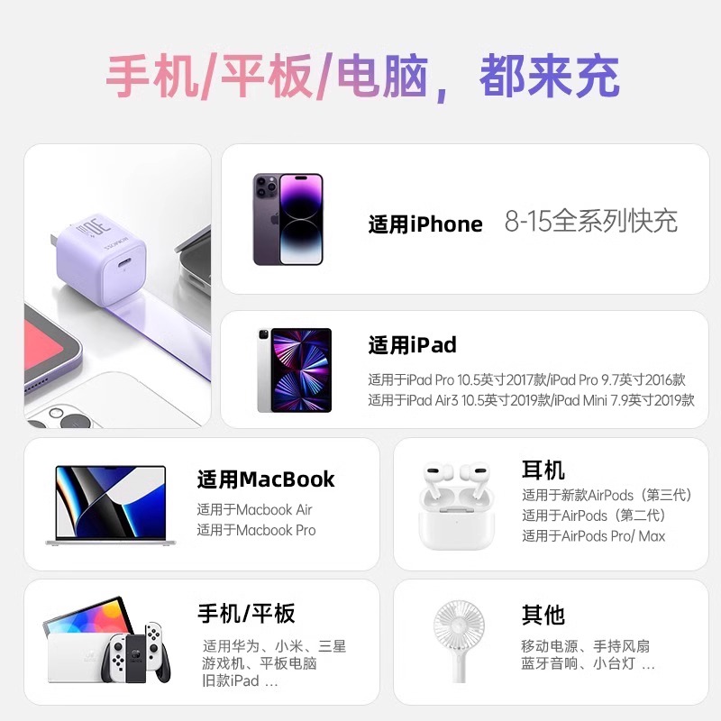 罗马仕充电头适用苹果iPhone手机快氮化镓充电器