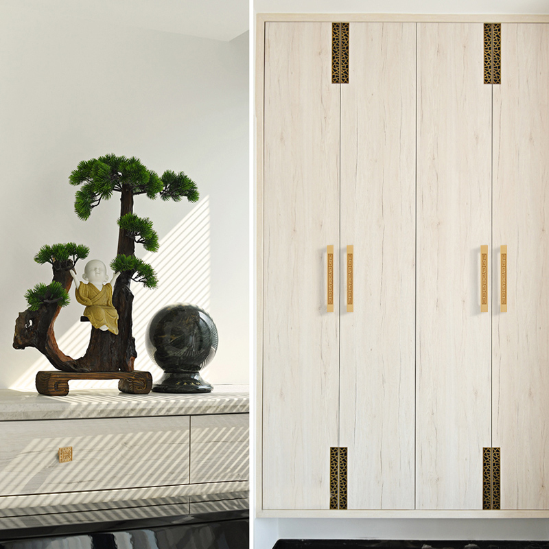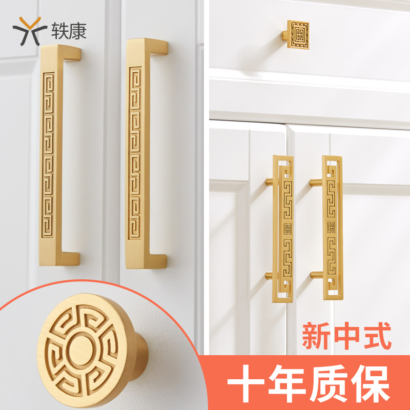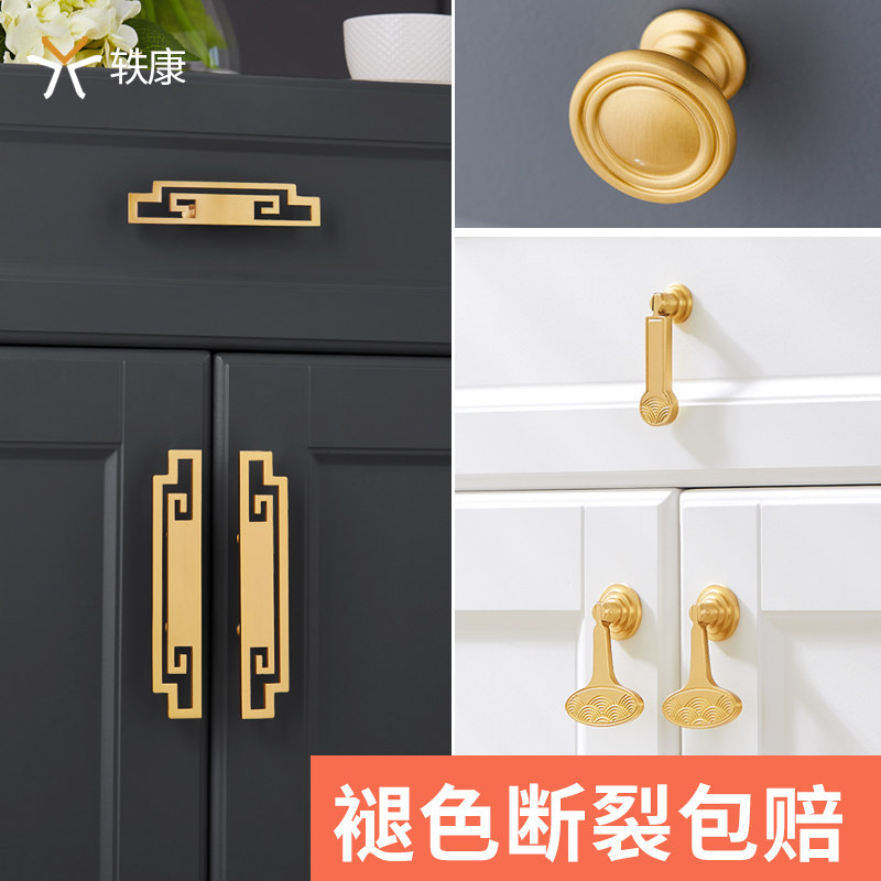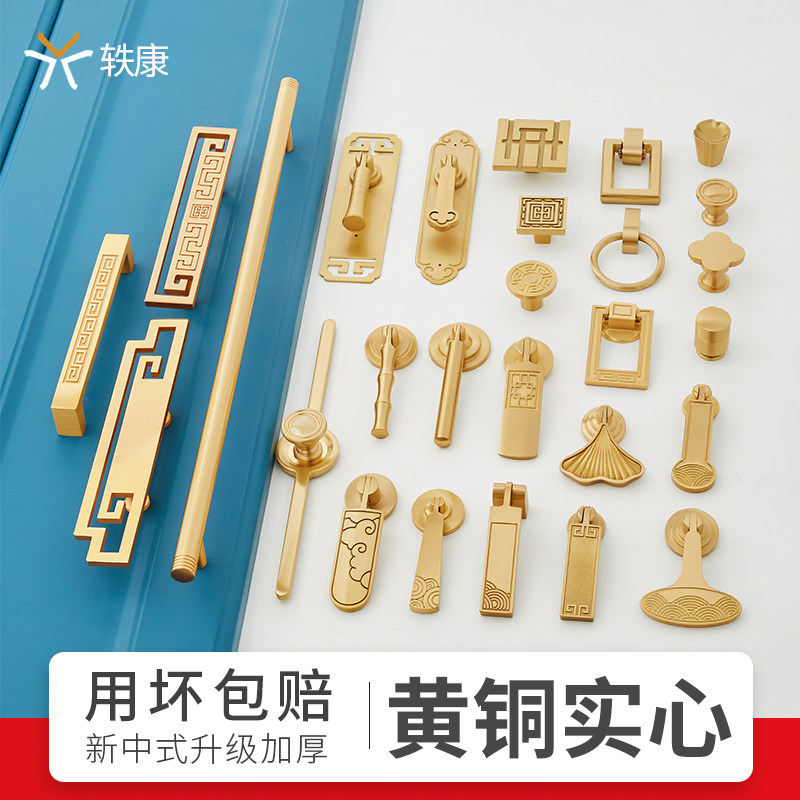 新中式柜门黄铜拉手金色高档轻奢中式家具抽屉橱柜衣柜中古风拉手