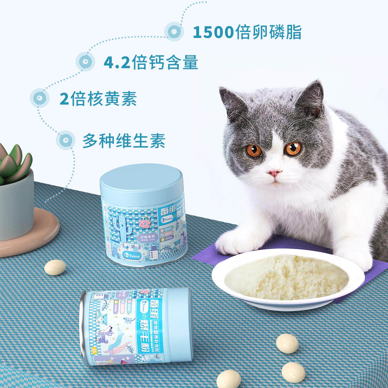telate特拉特鳖蛋爆毛粉憋卵磷脂鱼油宠物用美毛狗狗猫咪爆毛营养