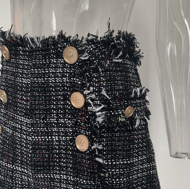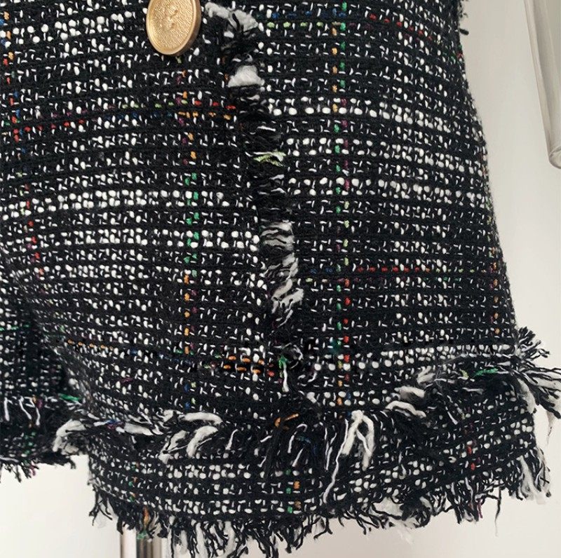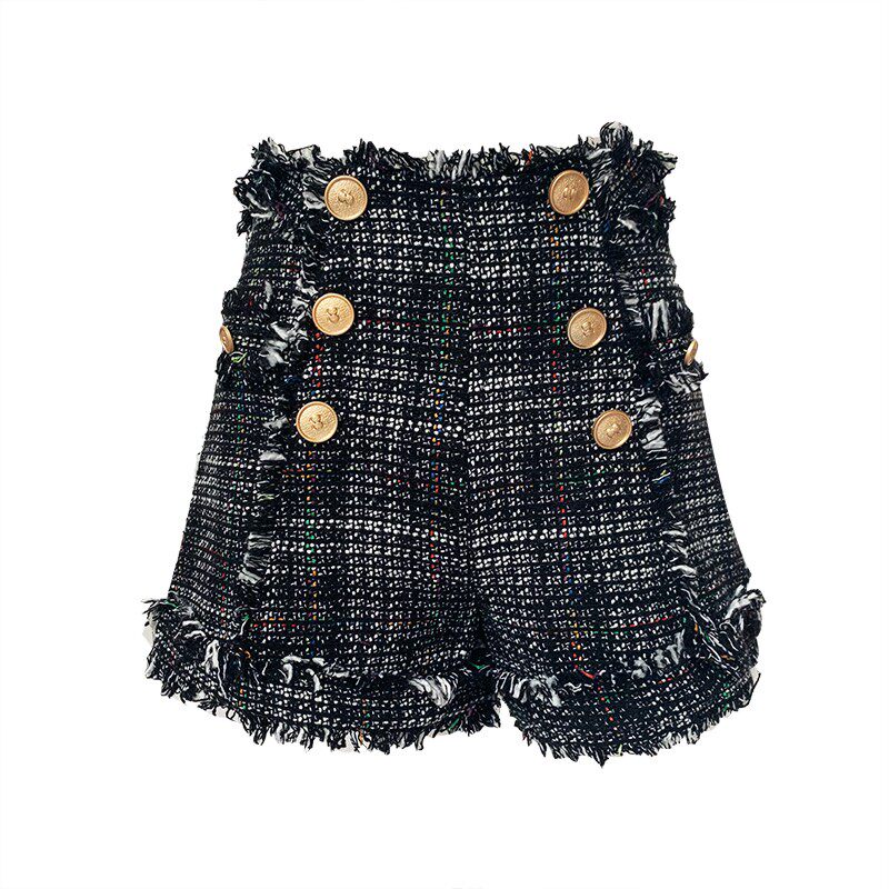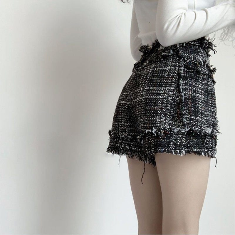 高端定制网红女神爆款流苏短裤秋冬新款高腰毛呢格子羊毛呢阔腿裤