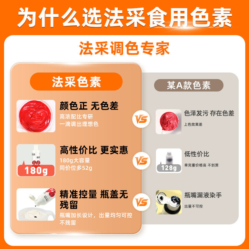 fc法采可食用色素烘焙蛋糕奶油翻糖装饰调色法彩色素食品级红黑ac