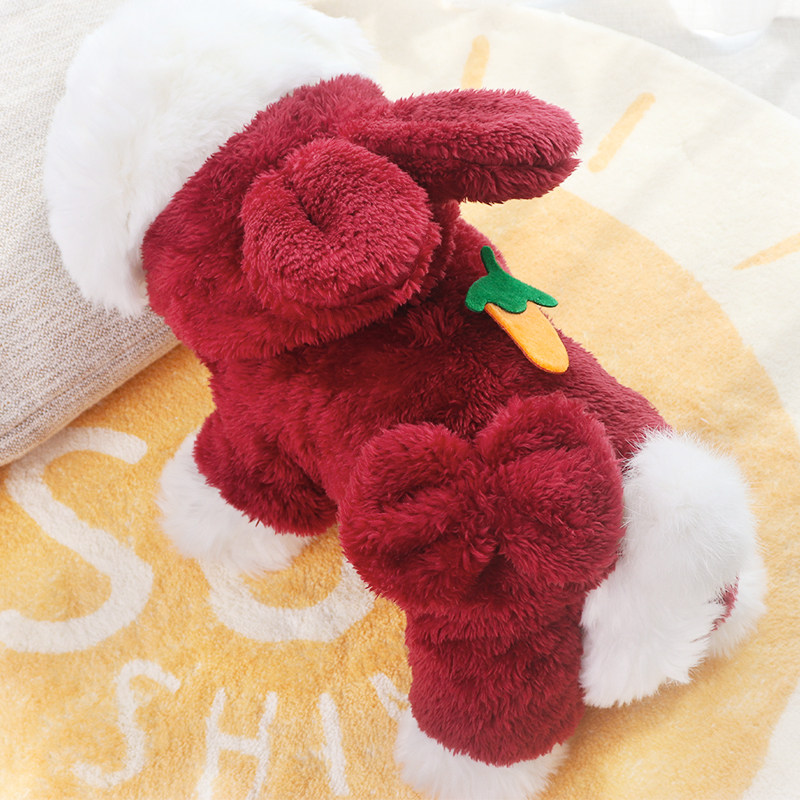 秋冬加厚网红可爱毛茸背熊冬装棉衣宠物泰迪比熊四脚小型犬狗衣服