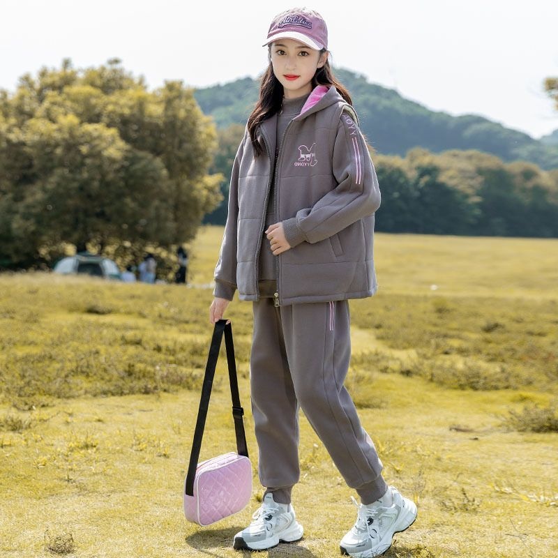 女童卫衣套装秋冬款2025新款洋气儿童冬装加绒加厚女孩卫衣三件套