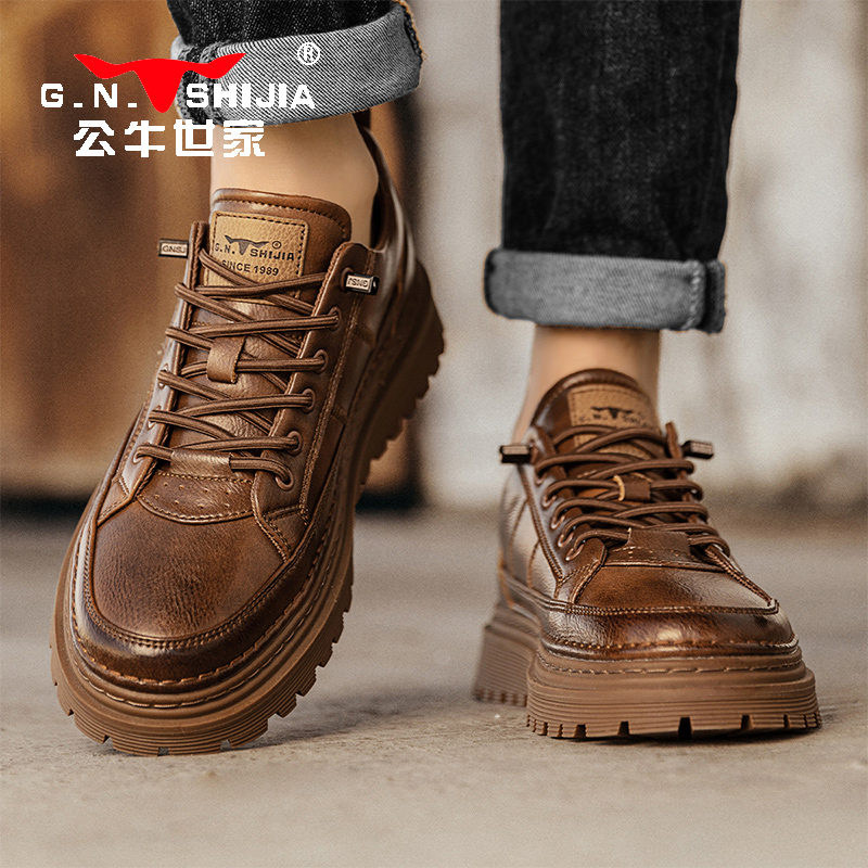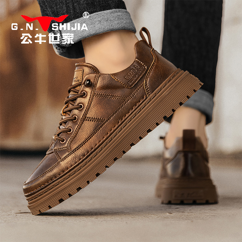 公牛世家皮鞋男款夏季软面真皮年轻人运动休闲板鞋英伦风高端男鞋