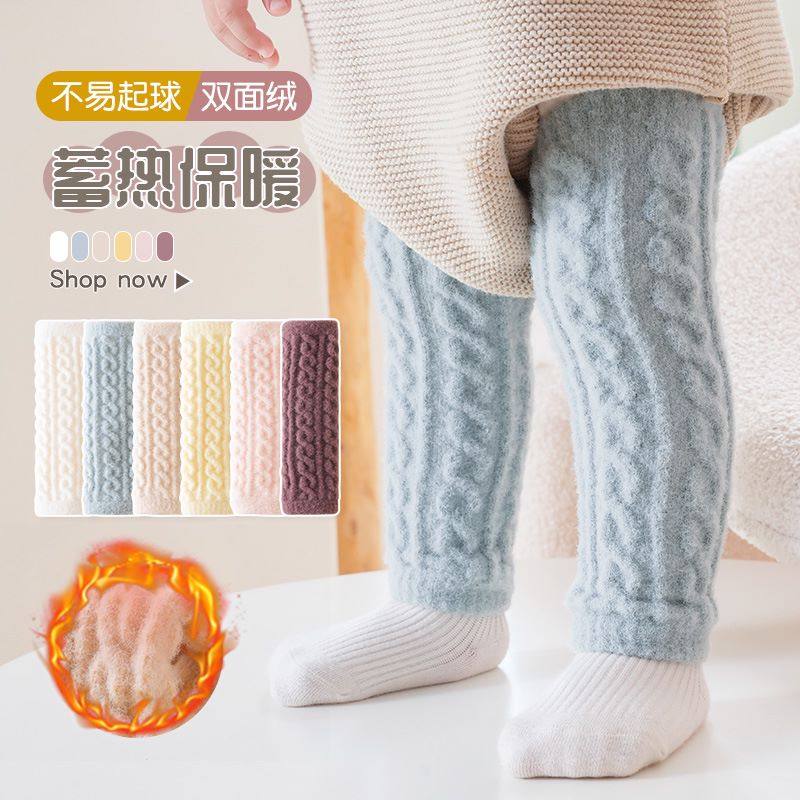 婴儿秋冬季加绒加厚保暖蓄热护膝婴幼儿防摔宝宝护腿换尿片裤袜筒