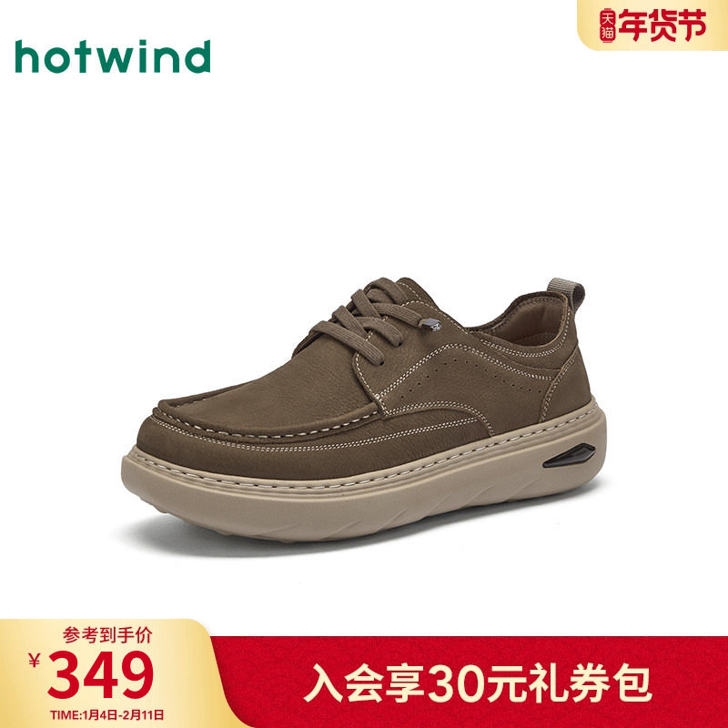 热风男鞋2025年秋季新款男士休闲皮鞋黄色复古增高鞋子H36M25301