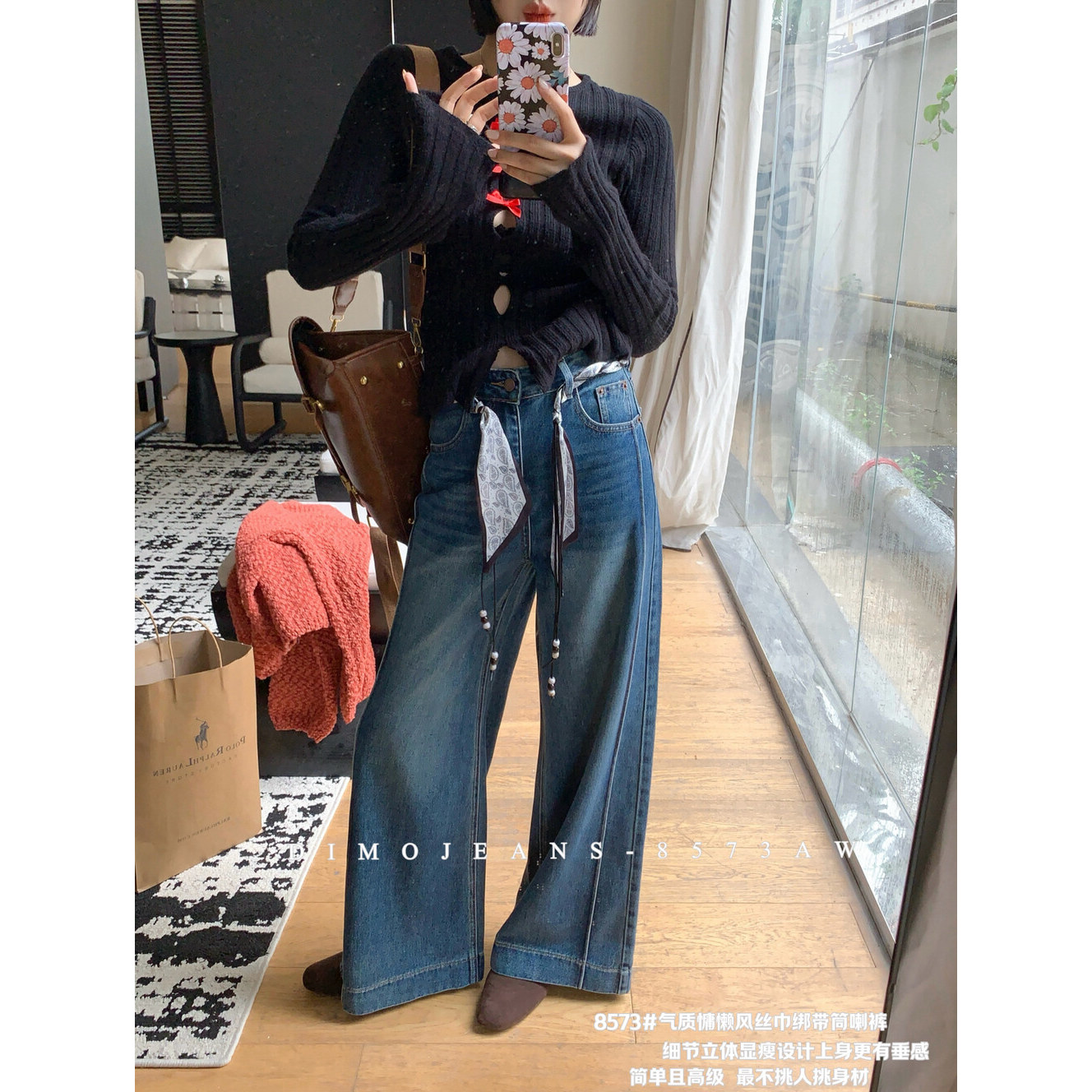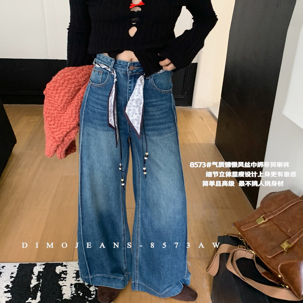 DIMO8573直筒高腰牛仔裤女2025秋季新款宽松显瘦阔腿裤拖地长裤子