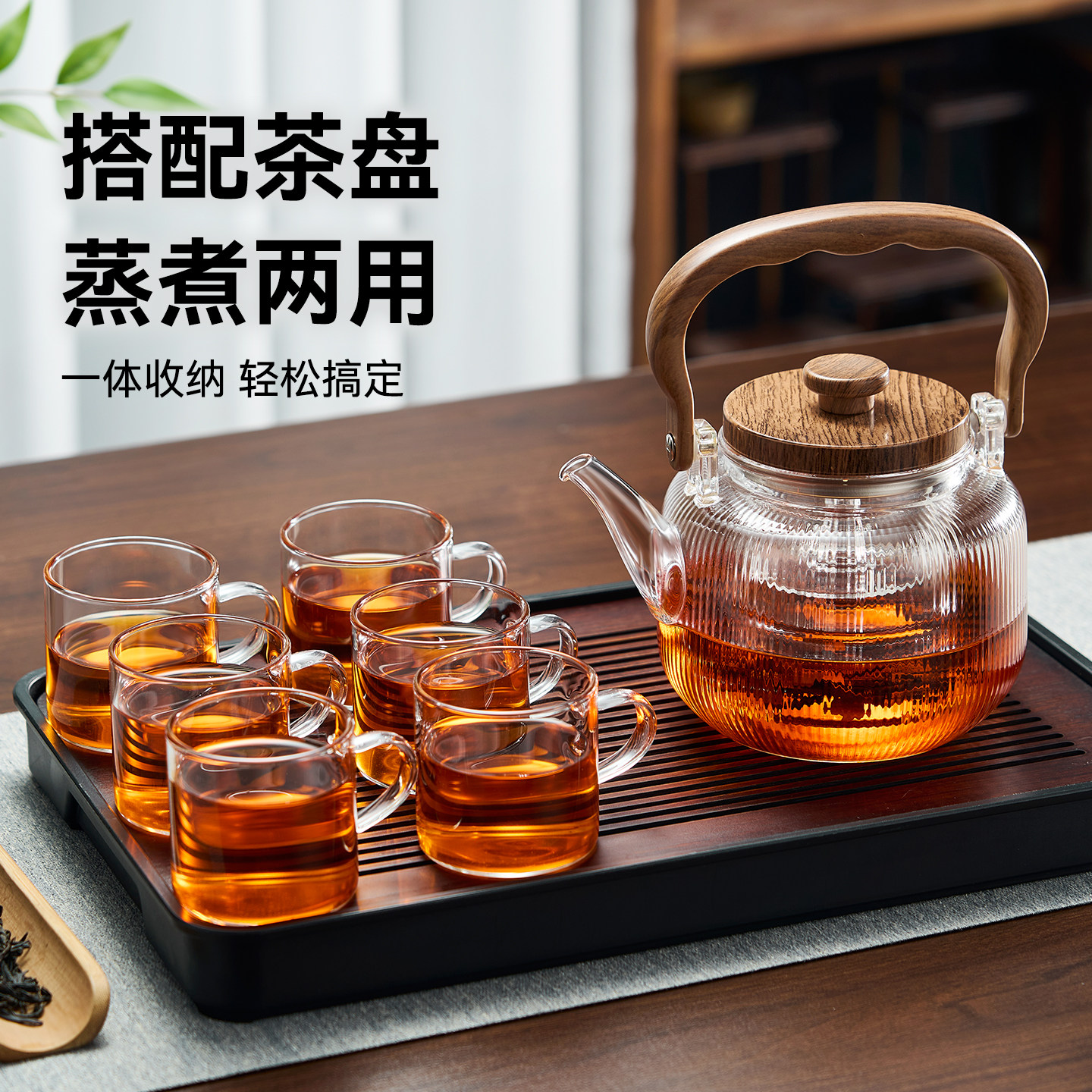 实木提梁把手加厚高硼硅玻璃