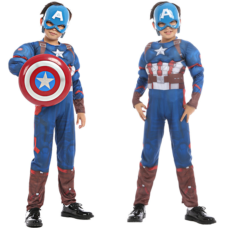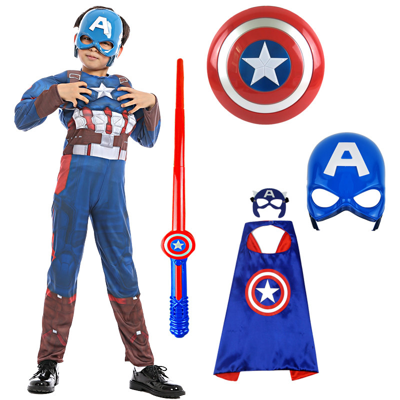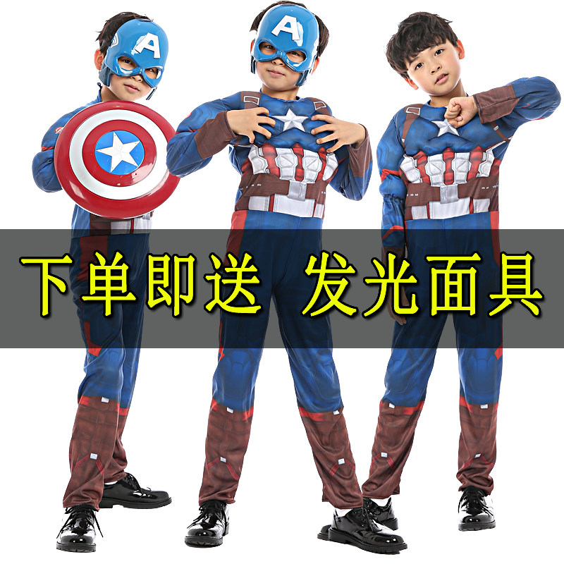 美国队长衣服儿童男孩盾牌面具万圣节儿童服装COS派对演出套装