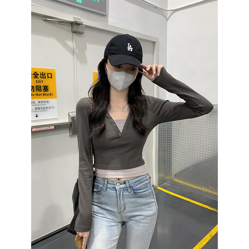 哺乳上衣撞色假两件正肩显瘦长袖